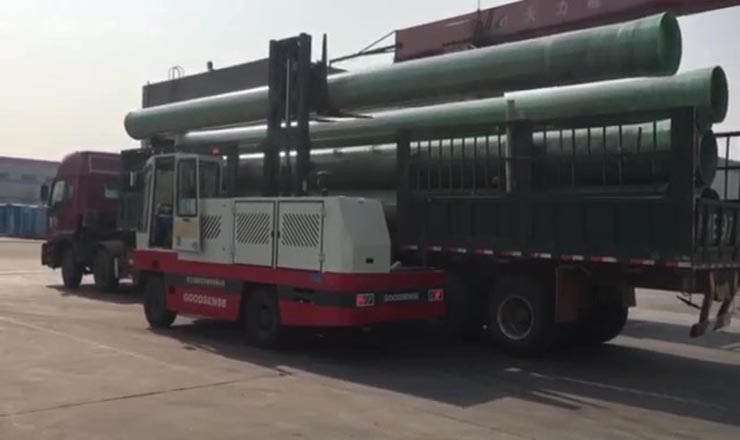 運輸時,所叉取的長條形貨物安放在車身一側貨臺上,搬運、堆垛過程中,通過性好,機動性高。