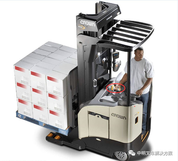 Crown-科朗設(shè)計的多任務控制手柄,可以讓操作員同時執(zhí)行多種任務,如叉車前進/后退、貨叉升高/降低、前傾/后仰等,只需保持同一個姿勢,就可完成多種任務!