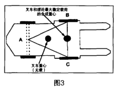穩(wěn)定三角形和理論最大穩(wěn)定載荷幾乎所有的平衡重叉車都是一個(gè)三點(diǎn)懸架系統(tǒng),也就是說車輛是由三點(diǎn)支撐的。無論叉車是否有四個(gè)車輪,叉車轉(zhuǎn)向軸都是通過軸中心的一個(gè)支點(diǎn)八連接在車體上的。叉車驅(qū)動(dòng)軸上兩車輪中心標(biāo)記為B和C點(diǎn),當(dāng)把這三點(diǎn)用假想直線連起來,就形成一個(gè)三角形,三角形ABC被稱為“穩(wěn)定三角形”(如圖3)。