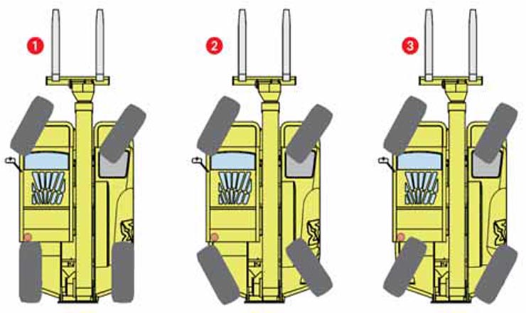 四輪驅動,兩輪轉向、四輪原地轉向及蟹行多種轉向模式,適應不同施工場合,并具備超強越野能力。